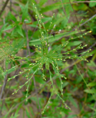Inflorescence paniculate, lower branch tips well short of upper branch tips, per Weakley's Flora.