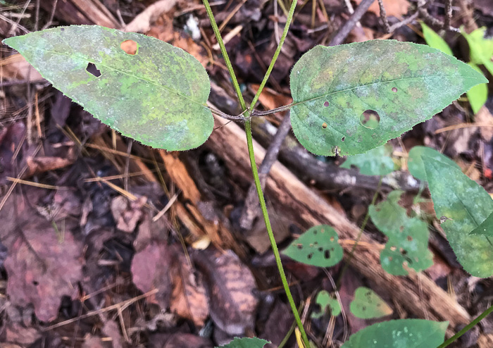 Leaves ovate with shallowly toothed margins and acuminate tips, per Wildflowers of Tennessee, the Ohio Valley, and the Southern Appalachians (Horn, Cathcart, Hemmerly, & Duhl, 2005).